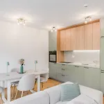 La cocina abierta cuenta con un lavavajillas y un horno en la cocina bien equipada. Esta propiedad está a 400 metros de la estación de teleférico 01.